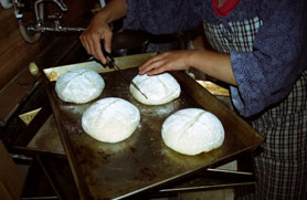 かまどの火は千葉県鴨川市の山の中にあるちいさなパン屋です。 原材料は国産小麦、オーガニックドライフルーツ&ナッツ、海塩。天然酵母は、ホシノ酵母と自家培養の酵母を使用しています。クロワッサンはバターを使用しますが、他のパンは油脂、砂糖、卵は使用していません。 手ごねで作っていますので、数に限りがあります。ご来店の際は、お電話いただければ安心です。